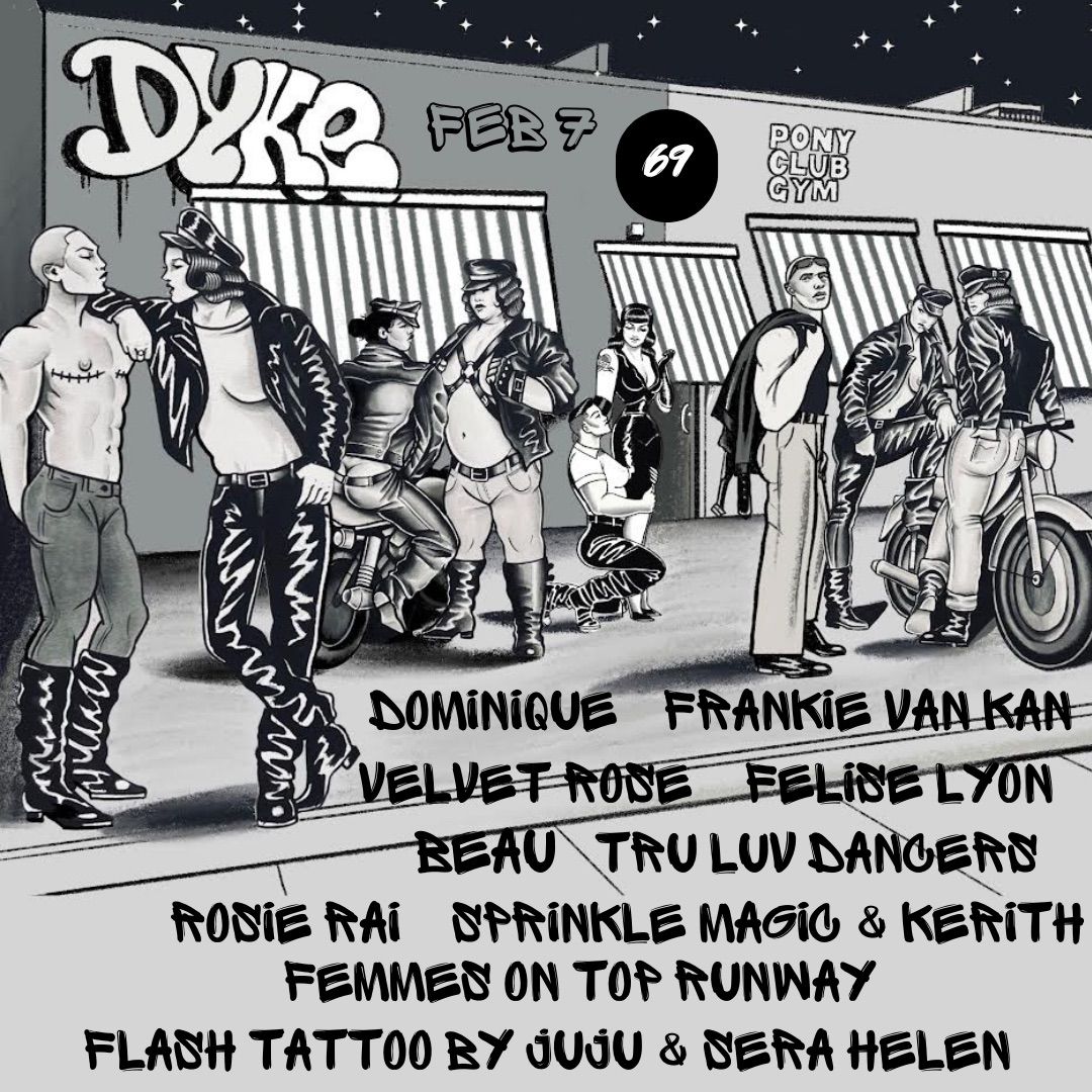 🔝 Forget about Femmes to the front, it’s Femmes on Top for the next edition of DYKE. On Feb 7th, 2026, ShitList Productions proudly presents DYKE 6 at a brand new venue in Preston. DYKE 6 is a gender-inclusive homage to the Dyke Bar for Dykes and their devotees.🎟️ Sliding scale tickets & more information - via link. Flyer artwork done by @melejuana