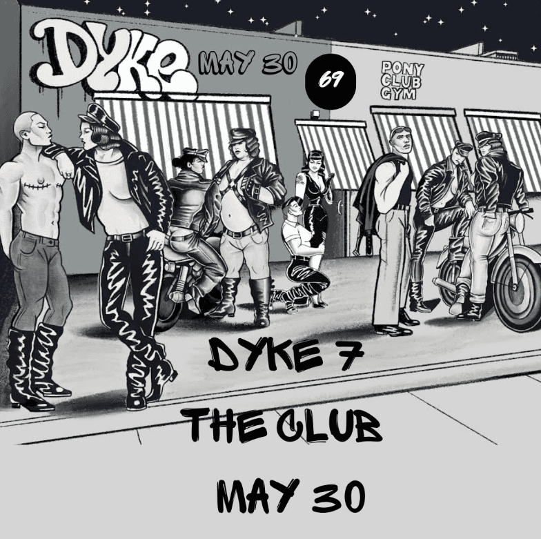 DYKE 7 - The Club. ๐ International, Interstate & local DJs, Go-go dancers, guest artists, installations and a play space. Exciting new space activated. ๐๏ธ May 30th at the @ponyclubgym Clubhouse, tickets on sale April 1st at 7pm - mark it in your calendar! ๐ This one is a tribute to the Queer Club. ๐จ Flyer art by @melejuana